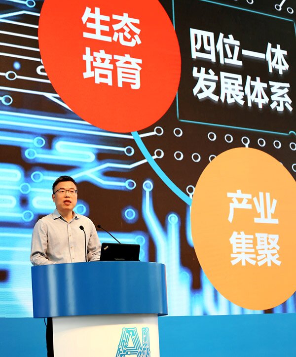 徐汇区委副书记、区长方世忠介绍上海(徐汇)人工智能产业集聚区建设概况,现场主要回答“三个问题”。 1、为什么在徐汇? 因为徐汇有着科技创新的基因。700年前,黄道婆在这里革新推广纺织技术;400年前,徐光启在这里从事农政研究、传播科学思想。徐汇是上海近代科技和海派文化的发源地。因为徐汇有着科技创新的资源。我们有120多家国家级、市级科研机构,10余所高等院校,数十个国家级、部级重点实验室以及外资研发中心;信息技术、生命健康产业总产出超过1200亿元,万人拥有专利数量全市第一,全社会研发投入占比达到7.95%。徐汇是上海科创中心的重要承载区,今年还被确定为国家级“双创”示范基地、“互联网+政务服务”示范区和知识产权综合改革示范区。因为徐汇有着科技创新的生态。这里拥有上海最大的成片历史风貌区,被称作“万国建筑博览”的衡复历史风貌区,有历史建筑5000多幢;工作或居住在区内的“两院”院士106名。徐汇是科创高端人才居住的首选之地。 2、徐汇要做什么? 我们将致力打造具有全球影响力的人工智能产业集聚区,力争成为上海建设国家人工智能高地新地标。这是响应国家的号召,也是落实市委市府的要求。到2020年,基本构建起完备的人工智能生态体系,建成国际知名的人工智能创新中心,形成百亿级规模的人工智能产业集群。 重点构筑“一核一极一带”的空间格局。“一核”是徐家汇—枫林创新核,依托复旦、交大、中科院等院校研发优势,打造人工智能源头创新策源地。“一极”是徐汇滨江创新极,围绕建设全球城市卓越水岸的愿景目标,从“文化先导”到“科创主导”,重点建设100多万平方米的西岸智慧谷,其中已经建成高200米的上海西岸国际人工智能中心,将成为未来上海人工智能国际总部基地,与浦东张江科学城和国家科学中心东西呼应。“一带”是地铁15号线串联的漕河泾到紫竹的国家级科技创新带,我们已经正式启动建设近100万平方米的徐汇北杨人工智能小镇。 3、徐汇将怎么做? 按照“勇当排头兵、敢为先行者”的总要求,遵循人工智能的发展规律、国际惯例和市场规则,我们将着力构建应用驱动、协同创新、产业集聚、生态培育“四位一体”的人工智能发展体系。坚持应用驱动,加强数据开放共享,在城市安全、政务服务、医疗健康、文化创意等领域启动一批示范应用项目。推动协同创新,支持国家重点项目、公共服务平台和产业技术联盟建设,力争在关键前沿技术领域取得突破。加快产业集聚,围绕基础层、技术层和应用层,培育引进更多标杆龙头企业,特别是人工智能的“独角兽”企业,形成全产业链和若干个细分领域产业集群。强化生态培育,制定人工智能发展支持政策及专项规划,成立人工智能产业基金,营造开放多元的创新生态。