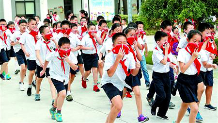 昨天,上海市中小学生2017学年第一学期安全教育周启动仪式在徐汇区求知小学举行。火灾逃生警报拉响,全校学生在教师的指导下捂住口鼻,沿着逃生通道进行消防疏散演练。